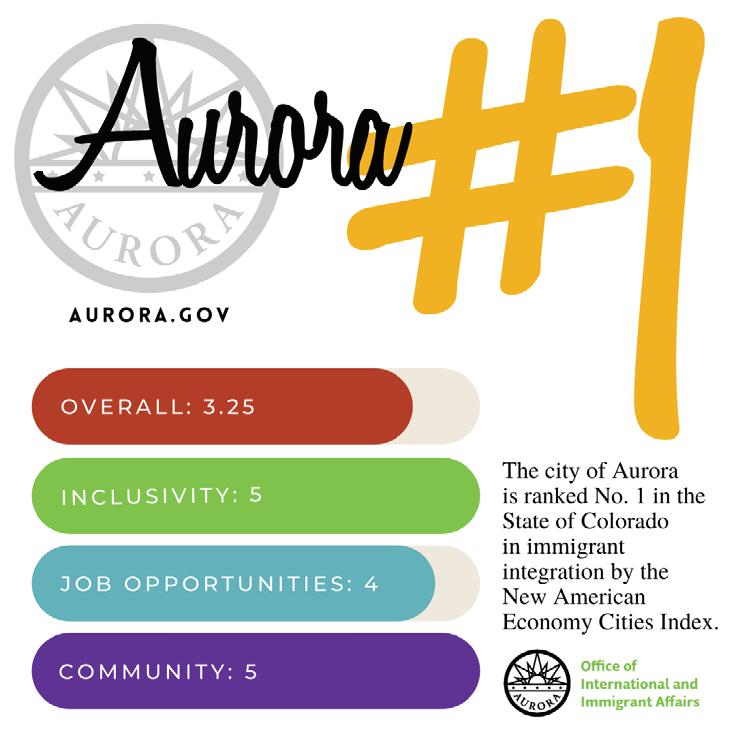 The city of Aurora has been ranked No. 1 overall in Colorado on the New American Economy Cities Index for its commitment to support its immigrant population. Aurora’s ranking on the index has risen steadily in recent years as the city has prioritized immigrant integration and inclusion in the community. In the individual categories that the index ranks, Aurora had the highest scores among ranked cities in Colorado in economic empowerment, inclusivity, government leadership, community, emergency management and job opportunities.