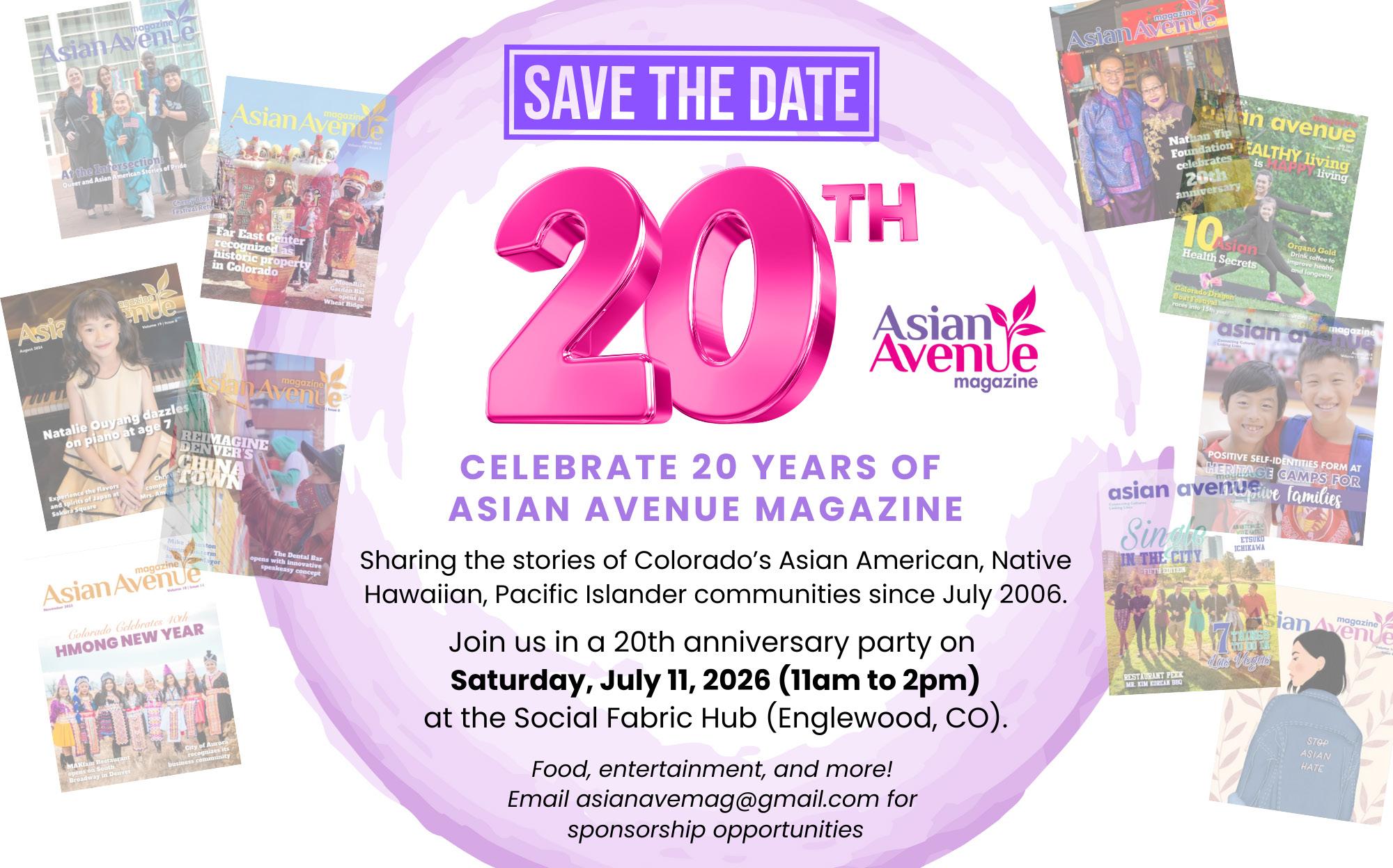 As we move forward in this new year, Asian Avenue is also celebrating a milestone of our own: 20 years of telling the stories of Colorado’s Asian American communities. What began as a small publication has grown into a living archive of our collective journeys — our struggles, our triumphs, our entrepreneurs, artists, advocates, and families.