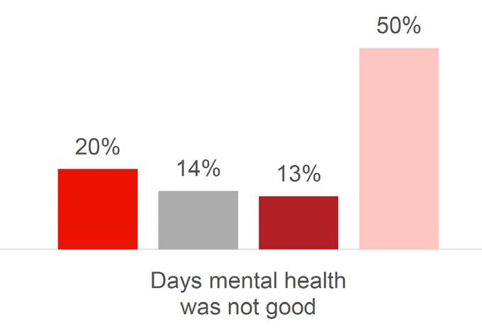 Statistics and views from Colorado’s caregivers confirm that many of us are struggling in this area. Three in ten family caregivers experience seven or more days a month of poor physical health. Half (51%) of caregivers experience high emotional stress while caregiving.