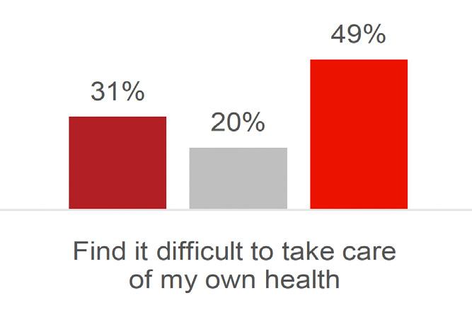 Three in ten (31%) have difficulty taking care of their own health while they focus on their care recipient’s needs. One-third (34%) feel alone while caregiving.