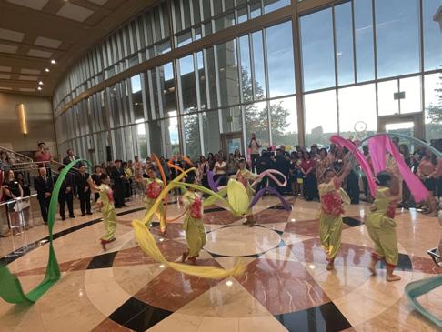 The reception featured food catered by the Taiwanese Chamber of Commerce, Chi Lin Asian Eatery, and Mama Shiou of Twin Dragon Restaurant. Bubble tea, watermelon juice, and moon cakes were also offered. Entertainment showcasing Taiwanese culture and heritage was presented by Christina Yeh’s Dance Studio,