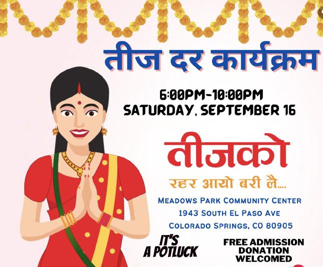 Celebrate the Nepalese Teej Festival with music and food. All ages are welcome to the potluck. Please bring an item to share. Come and meet members of the Nepali community in Colorado Springs.