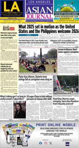 Teachers respond to this week’s deal to end week-long LAUSD strike THE Los Angeles teachers union on Tuesday, January 22 successfully negotiated with the school district on a new contract that effectively ended the union’s first strike in 30 years. From Jan. 14-22, one of the loudest protests in defense of quality public education spanned the Los Angeles Unified School District (LAUSD), which faced thunderous demands from the more than 30,000 members of United Teachers Los Angeles (UTLA) to lower class size, hire more teachers and school support staff, and increase pay, as previously reported by the Asian Journal. The union said that 81 percent of its members voted in favor of the tentative agreement, which addressed a majority of the teachers’ concerns. “For years, our students were being starved u PAGE A3
