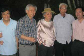 (From left) journalist Rogelio Constantino Medina, screenwriter-editor Pete Lacaba, artist Danilo Dalena, writer Gregorio Brillantes, and columnist Wilson Lee Flores of the Philippine Star in a Fairview, Quezon City reunion during Medina's birthday.