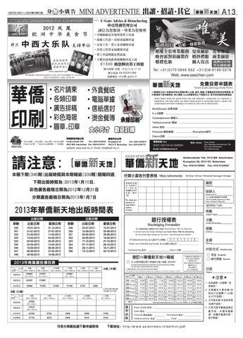 2013年華僑新天地出版時間表 出版日期 期數 340 341 342 343 344 345 346 347 348