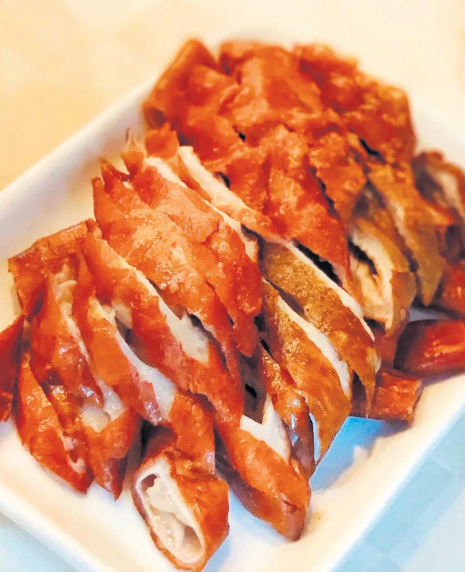 【脆皮大肠】是一道低调的经典粤菜, 又被称为“假烧鹅”,一道菜吃出了两种美 味。表层的形态和味道酷似烧鹅,内里还保 留着肥肠的肉感和油汁,吃起来让人回味无 穷! 脆皮大肠通常选用的食材的是“猪七 寸”的大肠头,也即猪大肠的直肠段,长度 约为7寸长(我是在东方行买的冷冻的,解 冻后用起来很方便);经过清洗、水煮、挂 汁、油炸等几个步骤,制作过程和烧鹅类 似,做出来的成品在焦脆中还裹着柔韧和爽 嫩,咀嚼的过程中透出卤香和脂香,再辅以 酸梅蘸酱,柔和解腻,口齿留香,独特又完 美的味道!