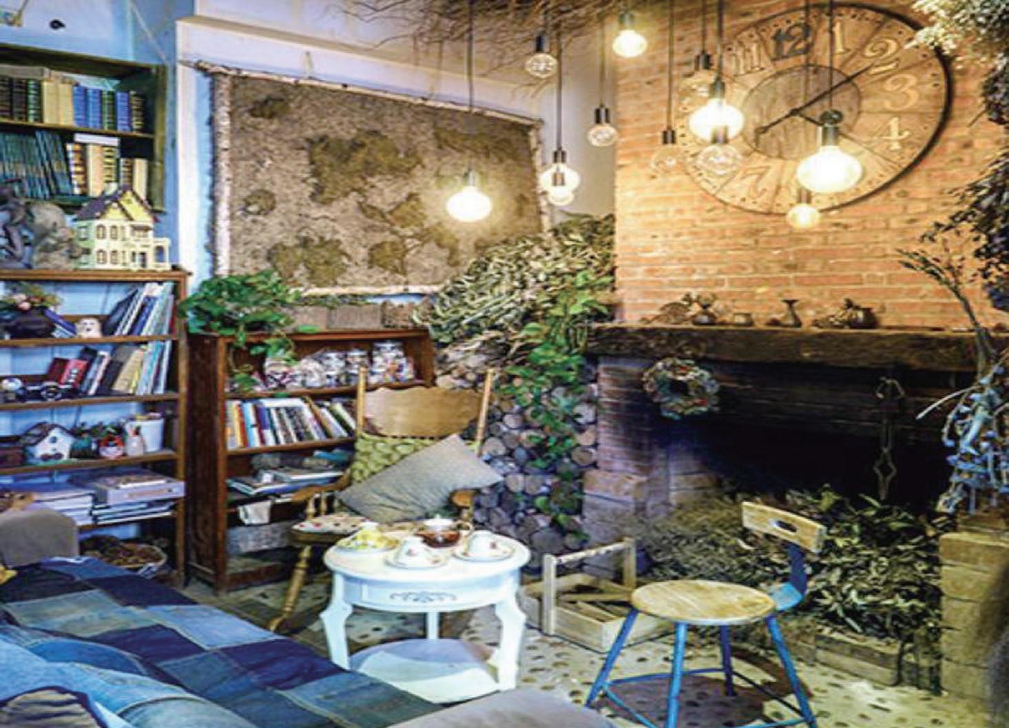 会客区有两个装饰用的做旧大钟,仿佛带人走进中 世纪的教堂,时间则不必深究了。