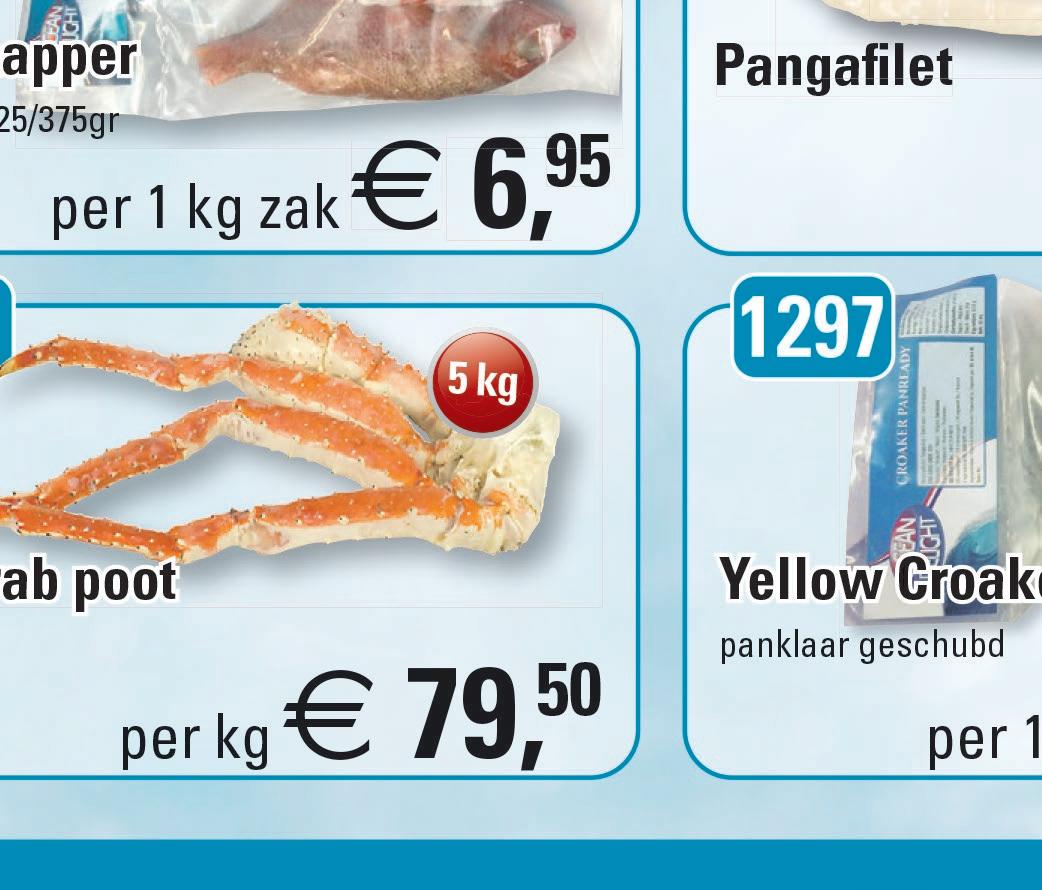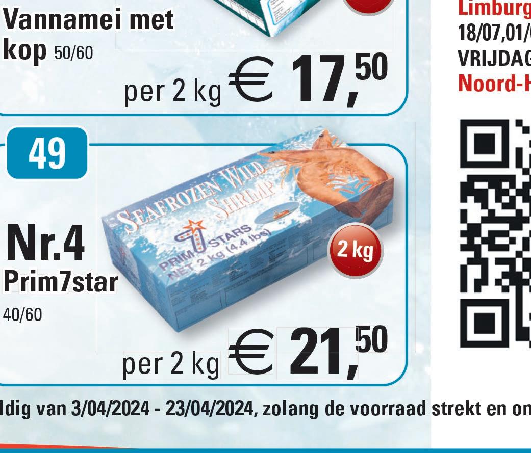 3,29 2,49 安順通 ANCHANT FOODS 滋補燉品料 soup mixture 150gr 雞骨草羅漢果湯 grosvenor momordica&herba abri soup 100gr MY SAN 200gr crackers onion & chives flav crackers garlic flav 2,79 2,29 魚泉 FISH WELL 380gr 蒟蒻絲 konjac strip 蒟蒻條 shirataki noedels stick 2,29 1,79 2,99 1,99 富隆正記 FOO LUNG 450gr 粘米粉 rice flour 糯米粉 rice flour glutinous 200ml 合泰行 HOP TAI HONG 什錦果 mixed pres. plums 200gr 3,49 2,49 1,99 1,29 六福 SIX FORTUNE 170gr 蒜味蠶豆 prepared broad bean 辣蠶豆 prepared broad bean hot young zen 芭樂乾 dried guava 150gr 鳳梨乾 dried pineapple 120gr 3,99 2,99 CHERRY GRANDFATHER 核桃糕 walnut candy 100gr 5,49 4,49 炸醬味年糕 jjajang topokki 120gr 甜辣味年糕 sweet & spicy toppoki 140gr 泡菜味年糕 kimchi topokki 115gr YOPOKKI年糕特价有效至4月30日 2,99 1,99 SINGHA 泰國啤酒 singha bier thailand 330ml 麒麟牌 KIRIN BRAND 靚冬菇 dried mushroom 100gr 2,79 1,99 2,79 1,99 麒麟牌 KIRIN BRAND 黑云耳 dried black funges-wan yi 100g SAILING BOAT 東莞米粉 rice vermicelli 400gr 1,59 1,29 SAU TAO 手工厦門麵線 hand made amoy flour noodle 300gr 幼白素麵 fine white plain noodles 284gr 2,69 1,79 1,99 1,49 AROY-D 400ml 椰奶 19% Fat coconut milk 煮椰奶 19% Fat coconut milk-cooking SHINODE 日本米 japanse rijst 29,99 24,99 10 kg 3,99 2,99 1 kg 6,99 5,99 BIBIGO 600gr chicken & vege gyoza dumplings pork & vege gyoza dumpling 荷蘭 HOLLAND 有頭蝦 garnalen m/kop nr.3 2kg 44,99 42,99 蝦球 Vannamei P&D 26/30 800g IQF 11,99 8,99 5,99 4,99 ASIAN PEARL pangasius steak 100/200 1kg ASIAN PEARL 北海甜蝦 noordse garnalen gekookt 1kg 13,25 9,99 KNORR 家樂牌調味粉 aromat seasoning powder 1kg 13,99 8,99 AJINOMOTO 味精 ve-tsin-kristal 22.5kg 69,99 67,99 36,99 32,99 CSM 糖 suiker 25kg 9,99 8,99 GUTRUF 咖哩粉 Kerrie poeder 440gram 1,29 0,99 李錦記 LEE KUM KEE 醬料包 sauzen 50-80gr 多种味道 diverse smaken FRESH ASIA 北方大饅頭 chinese bun 480gr 3,79 2,99 GOLDEN PAGODA 花雕酒 shaohsing chiew 600ml 14% 2,49 1,99 水仙花牌 Narcissus 荔枝 lychees in syrup 567gr 2,49 1,99 1 罐 voor 46,99 44,99 24 罐 voor YOPOKKI 1,59 1,29 1 瓶 voor 34,99 32,99 24 瓶 voor 龍標 DRAGON BRAND 青龍炸粉 self raising flour 1.5kg 29,99 24,99 10 包 voor 3,29 2,79 1 包 voor PFP Frozen crystal ball with egg 500gr Frozen sandwich fish tofu 480gr 5,49 3,99