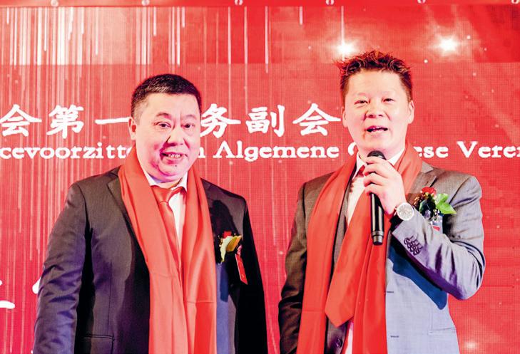 成立于1947年11月、有着悠久历史 和光荣传统的旅荷华侨总会(以下简称“ 总会”)2月21日晚在乌特勒支大众美食 总汇隆重举行新一届理事会就职典礼暨中 国龙年春节联欢晚会,胡伟国卸任第十六 届理事会会长,胡国乾接任第十七届理事 会会长。中国驻荷兰大使馆赵德勇公使和 马天秘书应邀出席。正在荷兰慰问演出的 中国侨联“四海同春”艺术团团长郭启 华,总会理事会成员、历届名誉和荣誉会 长,荷兰各大华人社团负责人,华侨华人 和中资企业代表,及荷兰友好等近600人 参加,场面盛大,气氛热烈。 赵德勇公使致辞,首先代表中国驻荷 兰大使馆祝贺以胡国乾为会长的旅荷华侨 总会第十七届理事会诞生。他高度肯定了 总会成立70多年来,在广泛团结旅荷侨 胞、支持中国和荷兰社会经济发展、促进 和谐侨社建设、维护侨胞合法权益、弘扬 中华优秀传统文化、推动中国和平统一、 促进中荷友好交往等各方面作出的积极贡 献,称其是“推动华社发展的探索者、先 行者和引领者,在侨界发展史上书写了精 彩华章。”他代表使馆向胡伟国和总会历 届会长表示敬意。