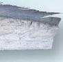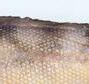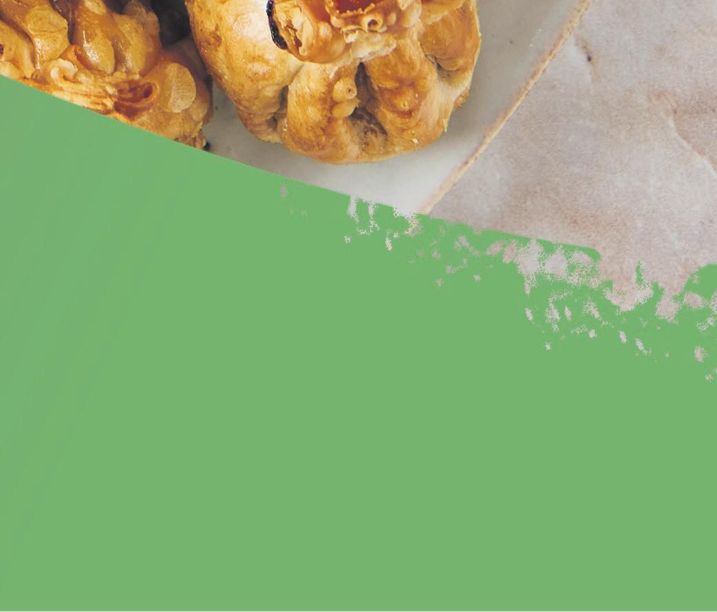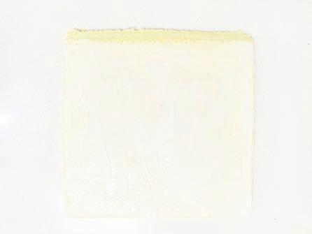 步骤10:冷却至稍有余热时翻面,即肉 松朝下,在蛋糕片顶部图上位置斜切一 刀,便于最后封口。