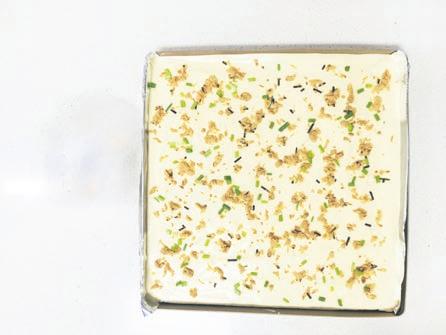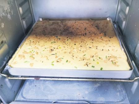 步骤9:烤箱提前预热,中下层180度,烤 25-30分钟,直到表面金黄色。取出后 趁热撕去蛋糕边缘的锡纸。