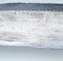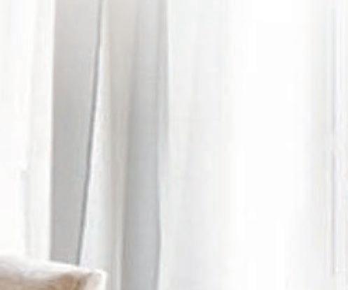 暗纹白色沙发。白颜色用在沙发上会有 少许的膨胀感,在挑选时可以选择带有纺织 图案或肌理的面料。 效果出众的短绒地毯。靠包和矮凳的灰 蓝色与地毯呼应,摆放在沙发前,充分增加 沙发前的舒适度。