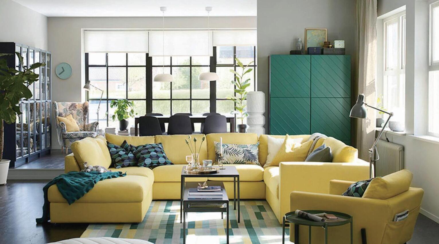 沙发充当色彩担当 巧用沙发连接出好气色。5人位的U形沙发拟定了客厅里的主 色,调色板自此铺展开来:利用相似的色彩元素延伸至角落,房间 风格一气呵成。