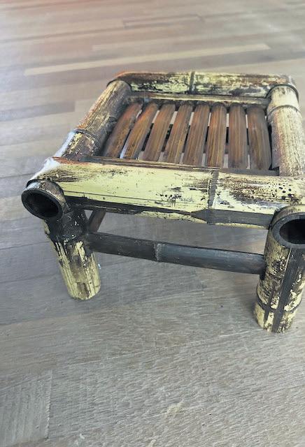 Een persoonlijke noot Bamboemeubels zijn nog steeds veelvoorkomend in Chinese huizen. Zelf ben ik opgegroeid in een huis met veel meubels van bamboe. We hadden bijvoorbeeld een bamboe rustbed in de ‘woonkamer’ staan, waar we met z’n allen op rus en. Ook was er een bamboe relaxbank waar mijn opa of oma vaak op lag, en talloze bamboekrukjes. Zo’n krukje kwam ik ook tegen in de tentoonstelling – niet als object, maar echt bedoeld om op te zi en. Als ik daarop plaatsneem, overvalt me een gevoel van heimwee. Je zit laag, maar voor een kinderlichaam was het perfect.