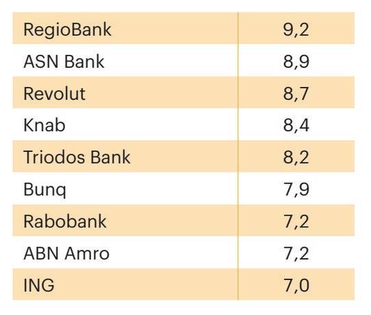 Bunq是唯一提供“免费、完整活期账户” (Bunq Free)的荷兰银行,但不提供实体借 记卡。也有国外银行提供免费账户。Revolut自 2023年起提供带荷兰账号(NL IBAN)的免费 账户,同样默认没有实体借记卡,但可一次性 付费订购( €7.99 )。在某些情况下,实体卡仍 有用,例如在国外取现。面板用户对Revolut总 体满意;今年也是首次有足够多的面板成员使 用Revolut账户,使其能纳入调查。