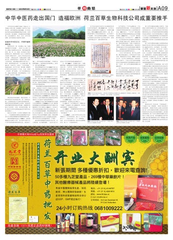 九芝堂作为一个百年品牌企业,不仅 仅深的消费者的青睐,并且也是湖南省 当地政府和国家政府重点支持和保护的 企业。2004年2月,“九芝堂”商标被国 家工商行政管理总局商标局认定为中国驰 名商标;2006年9月,“九芝堂”被国家 商务部认定为“中华老字号”;2008年9 月,九芝堂传统中药文化被列入国家级非 物质文化遗产保护目录。前国家主席江泽 民,国家总理朱镕基,全国人大副委员长 吴阶平,中国中央政治局委员,国务委员 李铁映均到九芝堂企业所在地进行调研考 察,上级领导均异口同声的期望九芝堂能 将中医药文化这块国粹发扬光大。 三百五十多年的历史,数十代人的梦 想,数百剂优良配方,中华中医药千年的 文化,都浓缩在九芝堂这一颗颗小小的药 丸之中,九芝堂人深知传承这一切的责任 是多么的巨大。于是九芝堂与神农架聚能 药业不约而同的将目光和期盼转向海外市 场。于是乎,荷兰百草生物科技有限公司 就此诞生。 为了更好的发扬中国传统中医文化, 为了可以为更多地区,更多民族,更多种族 的人民提供优质的健康服务.荷兰百草生 物科技有限公司带着远大的梦想和艰巨的 使命来到了荷兰.来到了欧洲。