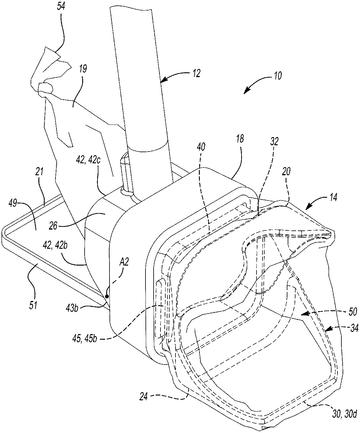 此動物糞便收集裝置包括手柄和外殼, 手柄沿軸線方向延伸。殼體連接至手柄 並垂直於手柄的軸線方向。使用時,將 垃圾袋套在殼體,即可掃除動物糞便。