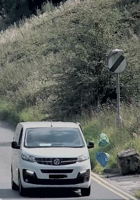 The court was shown CCTV of the van driving down the road –next to the M606, with bags of waste being thrown out one by one.