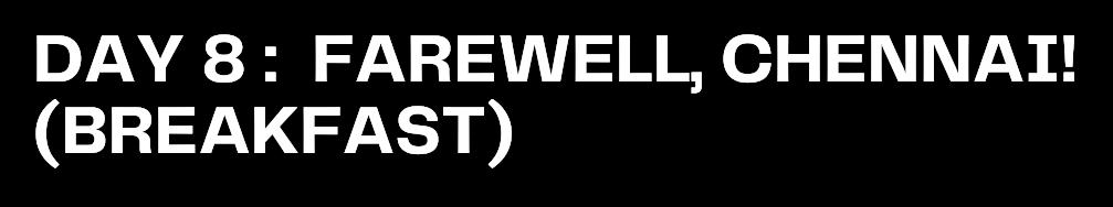 Enjoy your final breakfast as you prepare to depart Take a moment to soak in the vibrant culture one last time with a local visit in Chennai As you transfer to the airport, carry the cherished memories & spiritual awakenings from your journey the essence of South India will forever be part of you