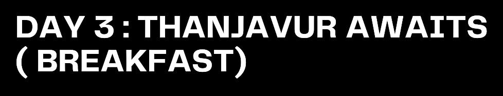 Rise and shine with a delicious breakfast and get ready for a scenic drive to Trichy! Upon arrival, unwind & discover ancient wonders like the revered Ganapati Temple & the awe-inspiring Rock Fort Temple Srirangam Temple awaits you with its majestic presence, dedicated to Lord Vishnu Each temple tells a story & invites you to experience the deep-rooted spirituality of Tamil Nadu. End the day with a peaceful overnight stay, reflecting on the inspiration around you