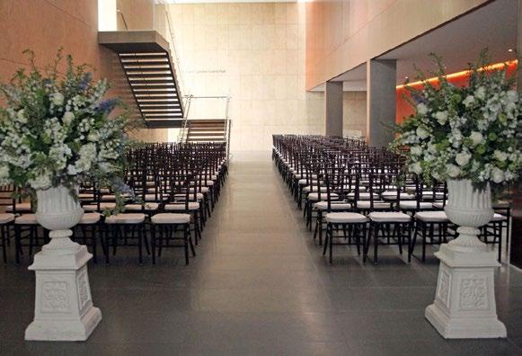 We allow flower petals (pink, peach, yellow, and white) to be thrown outdoors as the wedding couple depart the building. Dance floors and stages must be installed by Asia Society Texas.