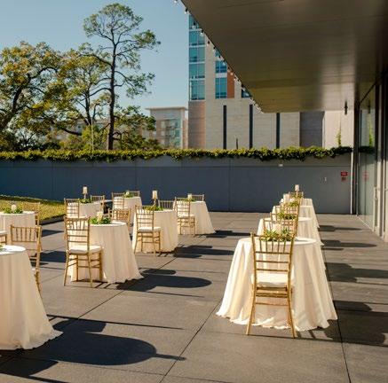 The Water Garden Terrace adjoins the Education Center and is the serene heart of the building. It looks out over the second-floor Elkins Foundation Water Garden The elegant space can be used for a cocktail reception or intimate fine dining experience.