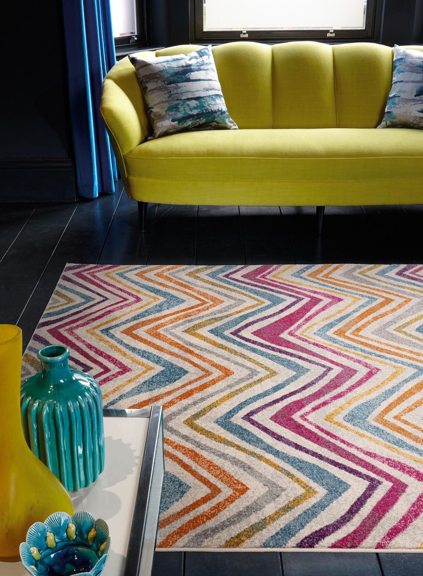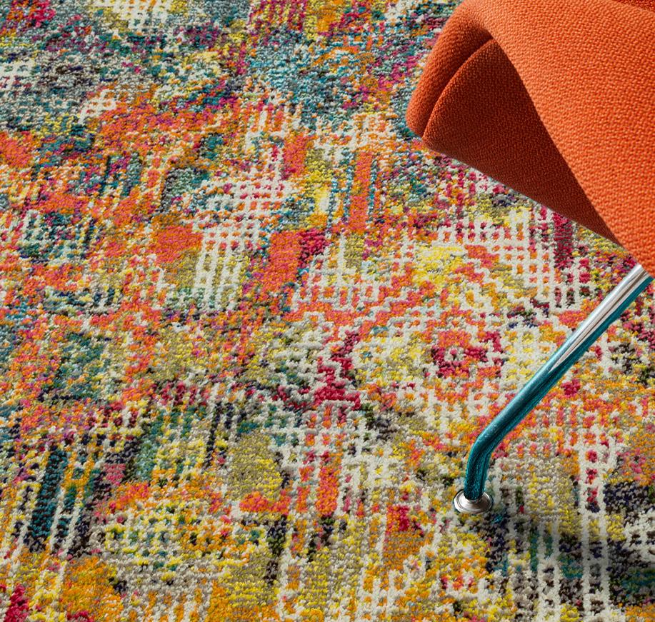 Machine made from a durable, easy clean fibre, the playful Colores Cloud collection is characterised by bold abstract designs and a bright colour palette.
