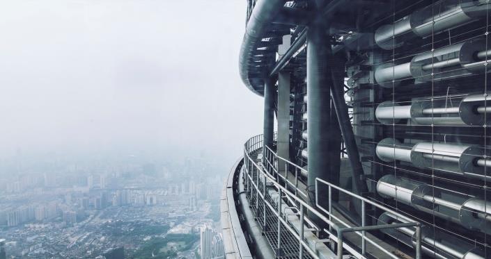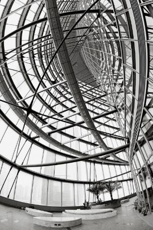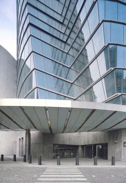 There are two lays of skin wrapping the entire building. The atriums created by the skins features as an insulation which keep the temperature stable.