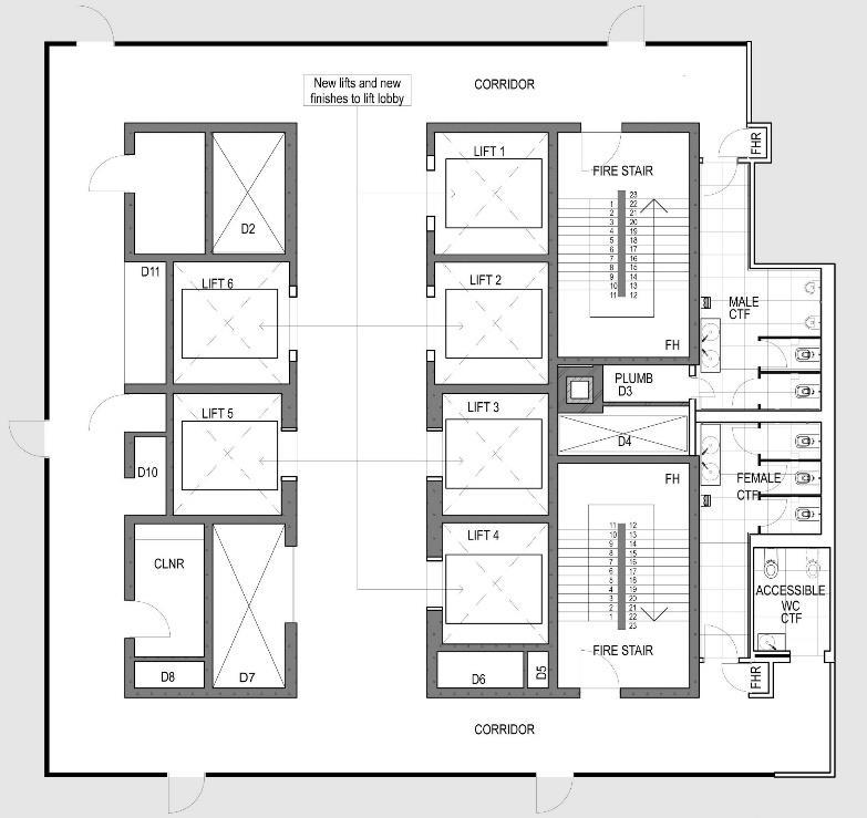 THE SERVICE CORE PROVIDES MEANS OF ACCOMODATING VERTICAL M&E SERVICES RUNS, SUCH AS