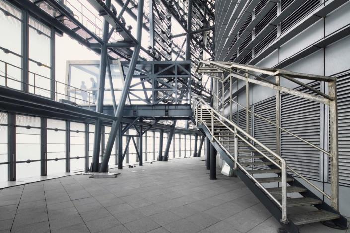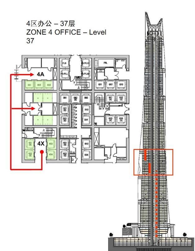 Building resist to Lateral loads through 3 layers of structure, they transfer wind and seismic load one by one, from inside to outside.