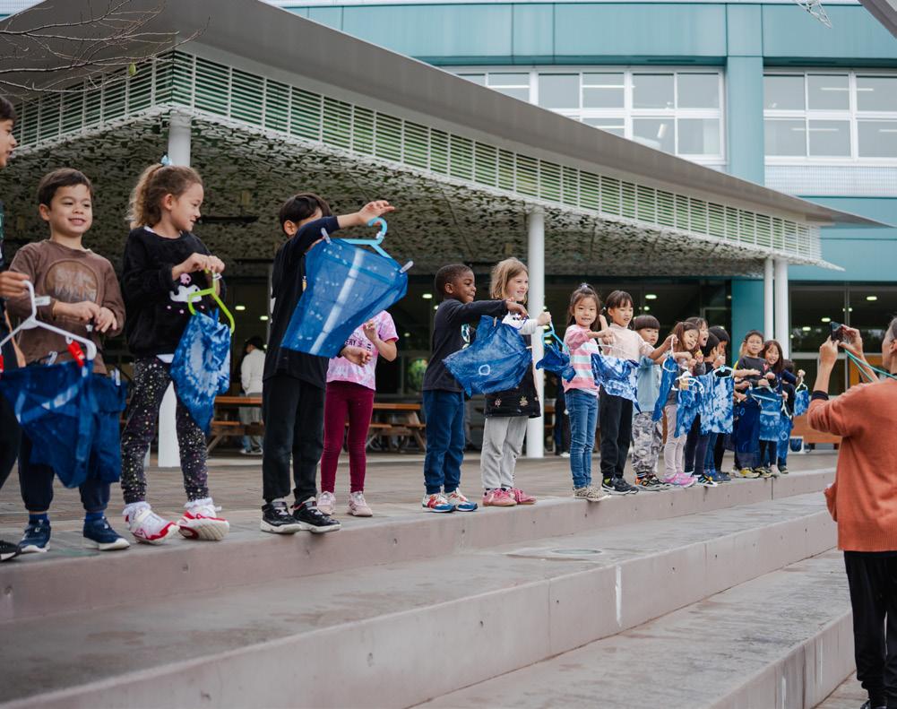 Our first graders spent this fall exploring the meaning of community, their role as members, and the factors that contribute to a positive and thriving community. Through their changemakers unit “How can we make our community a better place?” students looked at their own impact on others and thought about the environmental consequences of using paper towels. This led them to explore sustainable solutions such as cloth handkerchiefs which they connected to Japanese culture through their aizome dying project.