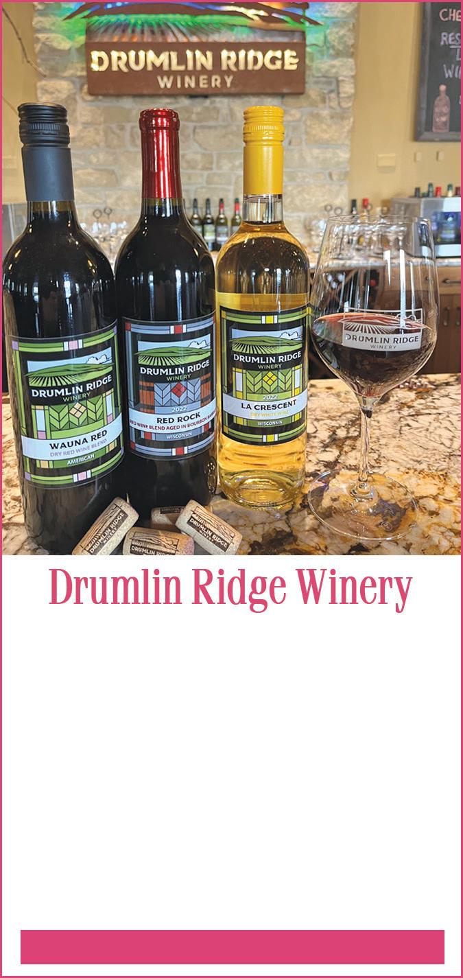 Drumlin Ridge, located just outside Madison, offers a private rental space for small gatherings. Guests can relax with a glass or a custom flight of locally produced wine while overlooking the hillside vineyard. Enjoy small plates or browse the gift shop.