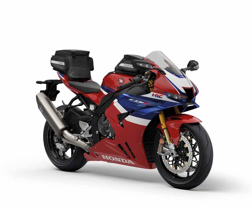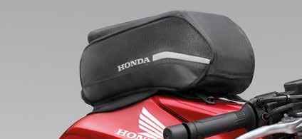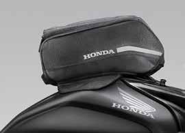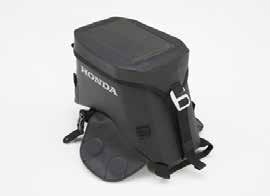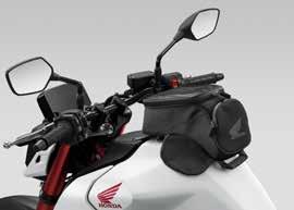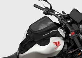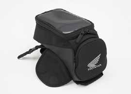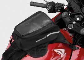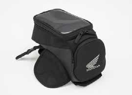 This Tank Bag can be swiftly attached or removed and will remains firmly secured with its fasteners on the front. Its Honda Genuine design perfectly matches the tank shape to provide a 7 litres capacity without impairing the handling of the Fireblade RR-R. Clear pocket on the top with a slit to route a cable if need be. Zipped pockets on each side, carrying handle and rain cover achieve to make this tank bag the ideal luggage for your Fireblade RR-R.