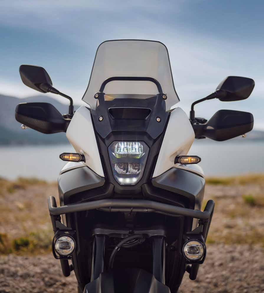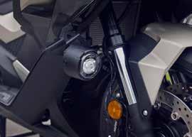 Set of 2 additional front Led headlights that will increase the visibility for the riders and make them more noticeable for the surrounding traffic. The LED Fog Lights increase visibility during poor weather conditions with strong brightness despite low energy consumption (11W). Operated through the handlebar SW and displayed on the TFT display.