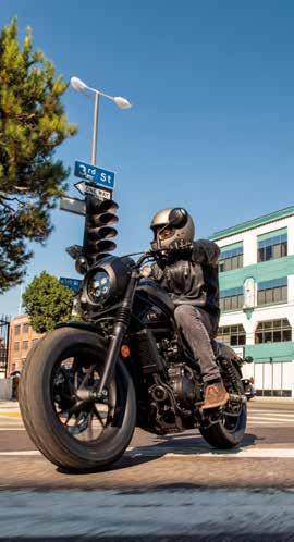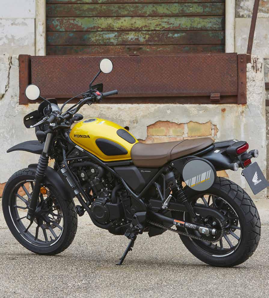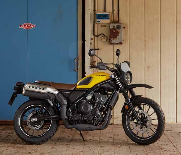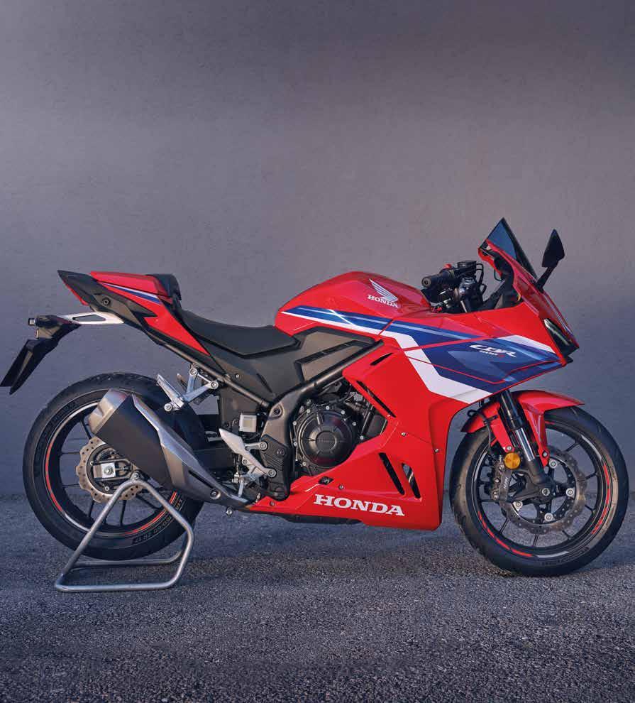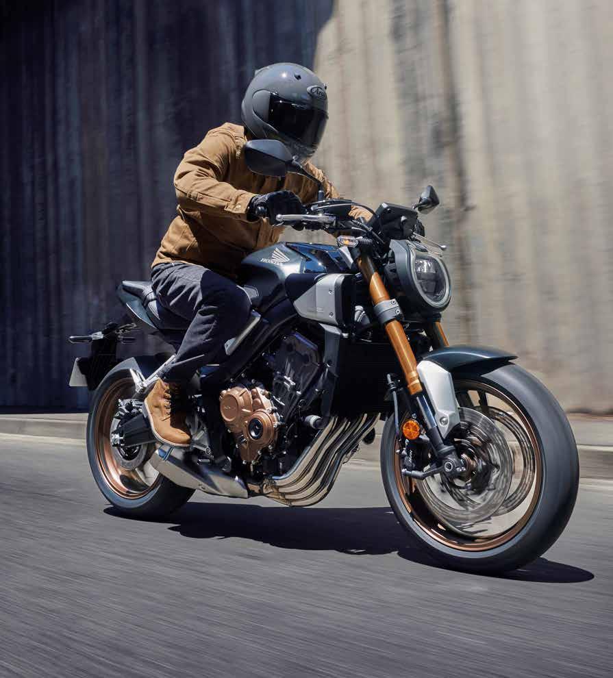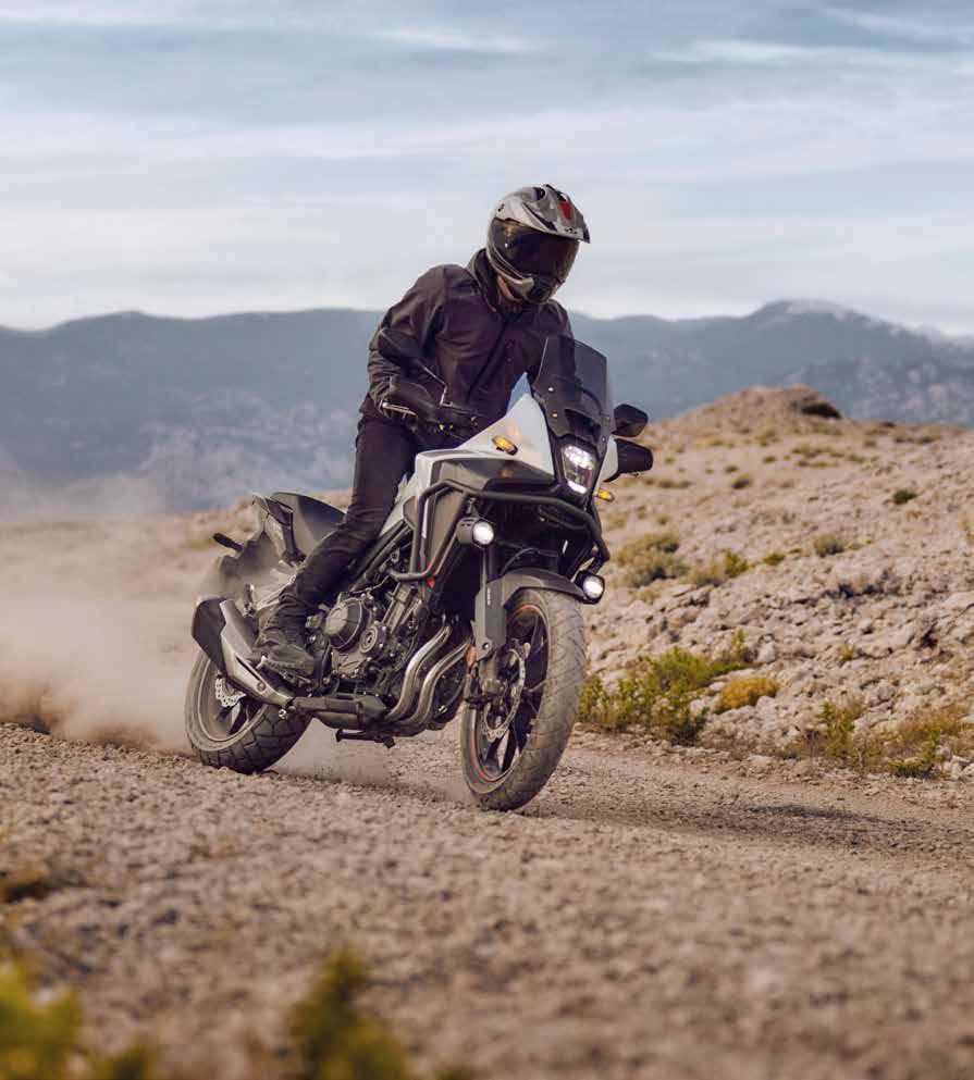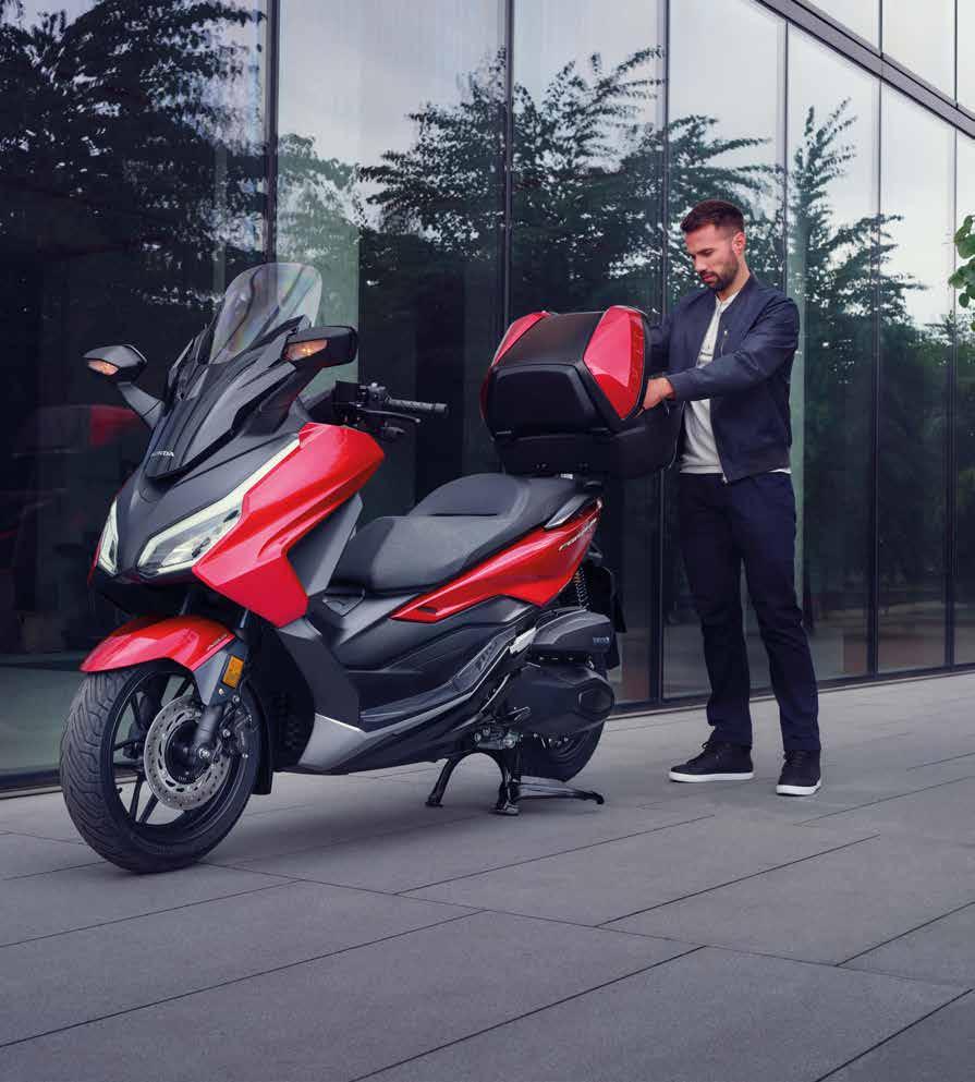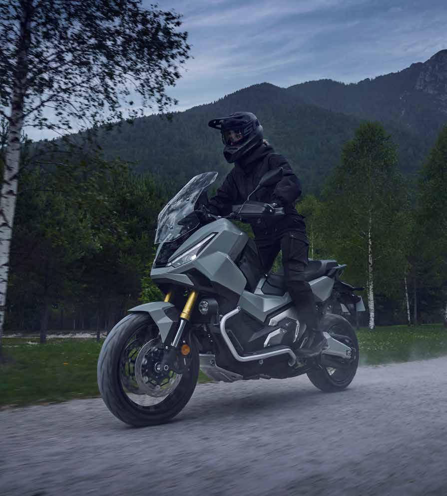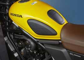 The specific details of this brochure do not apply to any particular product supplied or offered for sale. Manufacturers reserve the right to vary specifications, including colours, with or without notice at such times in such manner as deemed appropriate. Major as well as minor changes may be involved. Every effort, however, is made to ensure the accuracy of the particulars contained in this brochure. Consult your Dealer for details regarding the specifications of any featured product. This publication shall not constitute – under any circumstances whatsoever – an offer by the Company to any individual. All sales are made by the Distributor or Dealer subject to and with the benefit of the standard Conditions of Sale and Warranty provided by the Distributor or Dealer, copies of which may be obtained upon request. While efforts are made to ensure specification accuracy, brochures are prepared and printed several months in advance of distribution and consequently cannot always immediately reflect either changes in specification or in some isolated cases the provision of a particular feature. Customers are always advised to discuss specific details with the supplying Dealer, especially if a selection is dependent upon one of the features advertised. Please contact your local dealer for information and specifications. Please note that the fuel consumption figures provided are results obtained by Honda under standardised testing conditions prescribed by WMTC. Tests are conducted on a rolling road using a standard version of the vehicle with only one rider and no additional optional equipment. Actual fuel consumption may vary depending on how you ride, how you maintain your vehicle, weather, road conditions, tyre pressure, installation of accessories, cargo, rider and passenger weight, and other factors. You accept that if you do go ahead and make a purchase or enter into any kind of transaction, whether for payment or not, you did so entirely in reliance on your own skill and judgement and not on that of anyone else.