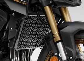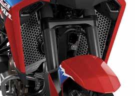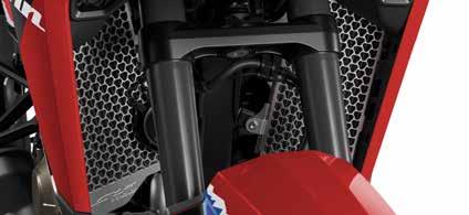 Made of stainless steel and showcasing the CRF logo, the Radiator Grills increase the African Twin tough image. Their original mesh pattern combines cooling capabilities with protection for the radiators against flying debris.