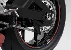 Preventing objects from getting caught in the sprocket, this heavy-duty cover will not impair the bend of the swingarm. Designed to conform to circuit regulations, it also increases the Racing appearance of the Fireblade RR-R.