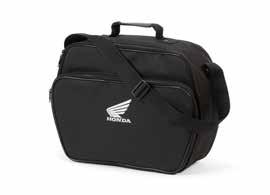 Black nylon bag with embroidered silver Honda wing logo on the top and red zippers. Comes with adjustable shoulder belt and carrying handle.