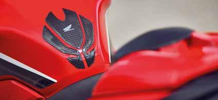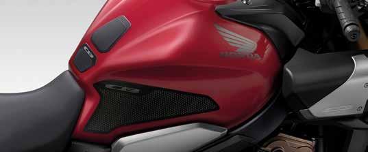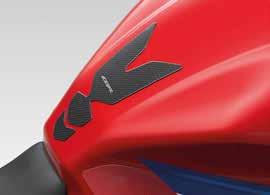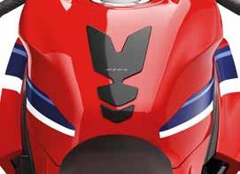 Shaped to match the curves of the Fireblade RR-R tank, this Pad protects the paint from scratches. Flexible and sporty with its carbon-pattern material, the Tank Pad features the CBR logo and is available in Black.