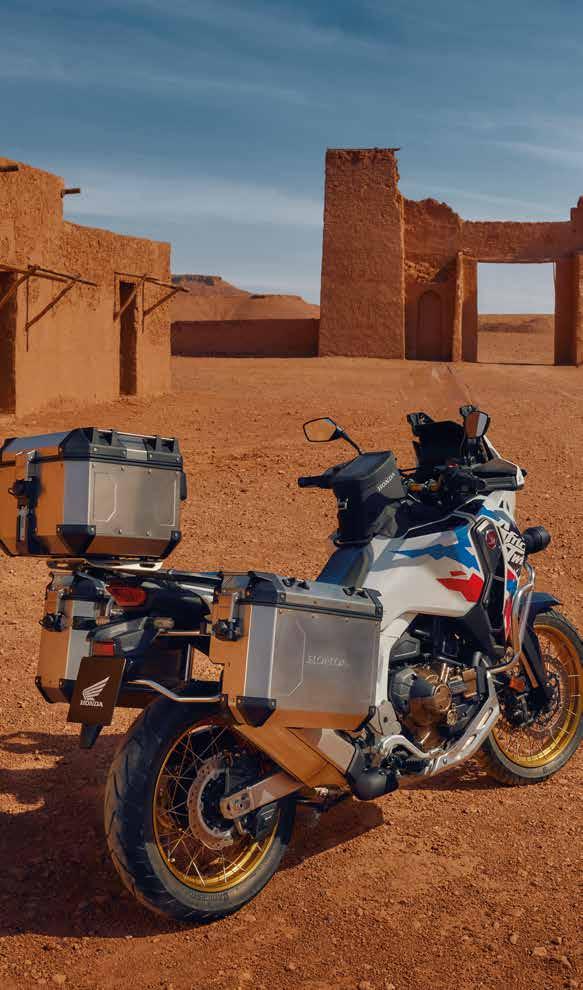 In 2017, the Africa Twin broke the record for the highest altitude reached by a twincylinder motorcycle. After 5 days of acclimatisation, a team of 5 five riders piloted the Africa Twin onto the slopes of the world’s highest active volcano, the Nevado Ojos del Salado – located between Argentina and Chile. Reaching 5,965 metres above sea level, the international team completed its ascent within 24 hours with Africa Twin specially equipped with Termignoni exhaust, revised final sprockets, new Metzeler MC360TM tyres and a range of Honda genuine accessories, Their route took them – in temperatures as low as minus 5 degrees Celsius – through broken asphalt, gravel, mud, sand and finally stretches of ice pockets known as ‘penitentes’, underlining once again the Africa Twin’s credentials as the best-performing off-road motorcycle in its class.