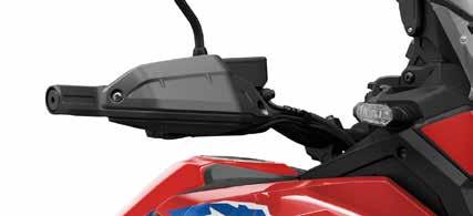 Wind and weather protection are enhanced by the upper deflector, which improves the ride comfort by reducing traveling air around the rider’s arms.
