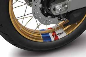 The Wheel Stripes set not only features the iconic Honda Racing logo but also enhances the overall racing aesthetic of the bike's undercarriage. With a single unit, these stripes can be easily installed on the bike, making it a convenient and versatile accessory. Perfect for enthusiasts looking to elevate the racing appearance of their motorcycle, the Wheel Stripes set adds a touch of style and sportiness to the bike's overall design.