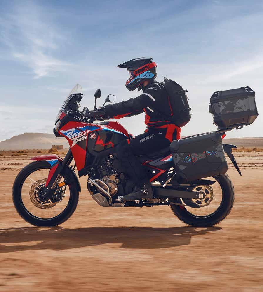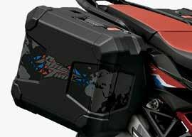 Top Box with a large capacity of 58L can store two full face helmets and much more, is designed with a new sticker made exclusively for the Africa Twin model. Its special lock allows to secure the lid without using the key.