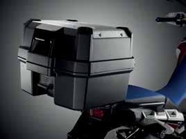 38L Top Box suitable for one helmet. The Honda one key system allows to operate the top box by using the ignition key. Top box base, key system and backrest are included.