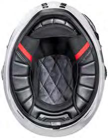 • E.Q.R.S. (Emergency Quick Release System) sørger for at kinnputene lett kan løsnes fra hjelmen ved en eventuell ulykke, slik at hjelmen lettere kan tas av hodet uten å skade føreren. Fullt uttakbart og vaskbart 3D interiør. Avtakbare og vaskbare kinnputer og ørepads. Kinnputer er tilgjengelige i forskjellige størrelser.
