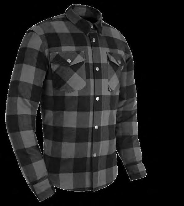 Skjorten har lommer for CE-godkjente polstringer på skuldre og albuer og lomme ryggen for Oxford sin CE-godkjente ryggplate (ekstrautstyr).