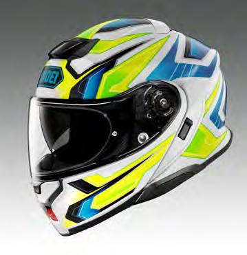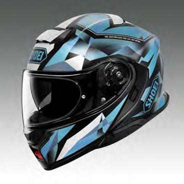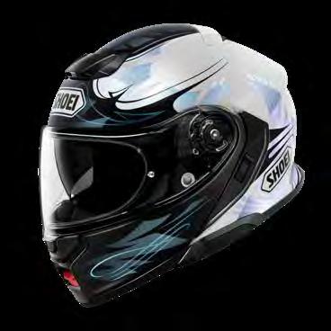 Markedets beste åpningshjelm for touring har blitt enda bedre. Bedre lufting og bedre støyreduksjon. lukket posisjon er gapet mellom åpningsdelen og hjelmen vesentlig redusert noe som både ser bedre ut og gir redusert støy. Centerlock på visiret og helt nyutviklet og mer komfortabel hakespenne, sikrere og om mulig enda bedre komfort. Godkjent etter den nyeste standarden ECE 22-06, og den er godkjent som både helhjelm og halvhjelm (P/J). Dvs at den også er godkjent for å kjøres med i åpen posisjon. Det er det faktisk ikke alle åpningshjelmer som er. Det nyutviklede Shoei Comlink festesystemet for integrert kommunikasjon er enda mer strømlinjeformet og skaper mindre støy enn sin forgjenger. (kommunikasjon kjøpes separat).