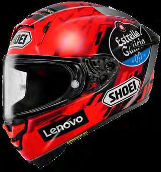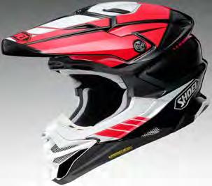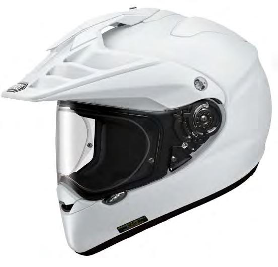• SHOEI E.Q.R.S (Emergency Quick Release System) sørger for at kinnputene lett kan løsnes fra hjelmen ved en evt. krasj, slik at hjelmen lettere kan tas av hodet.