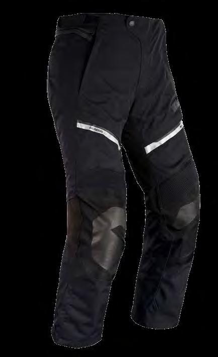Kvalitetsbukse som matcher Mondial-jakken. Her er det ikke spart på noe for å sikre topp sikkerhet, vanntetthet og passform. Den patenterte Dry2Dry™-membranen er laminert til ytterstoffet for å sikre best mulig vanntetthet, lavest mulig vekt og kombinasjonen med ventilasjonspanelene front på buksen hindrer at denne blir klam. Buksen er formsydd kjøreposisjon og har romslige justeringsmuligheter for å gjøre god plass til støvlene. Skjulte, kraftige nylonforsterkede sikkerhetssømmer og godt med reflekser. Uttakbart thermo innerfôr og avtakbare bukseseler. Kort og lang glidelås for sammenføying med Oxford sine jakker.