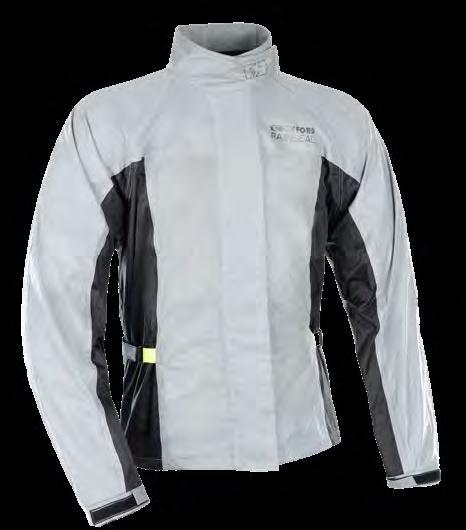 Den laminerte konstruksjonen sørger også for at jakken tar til seg lite vann og tørker raskt. God ventilering. CE beskyttere på albuer og skuldre. Lomme for ryggbeskytter (OB101).